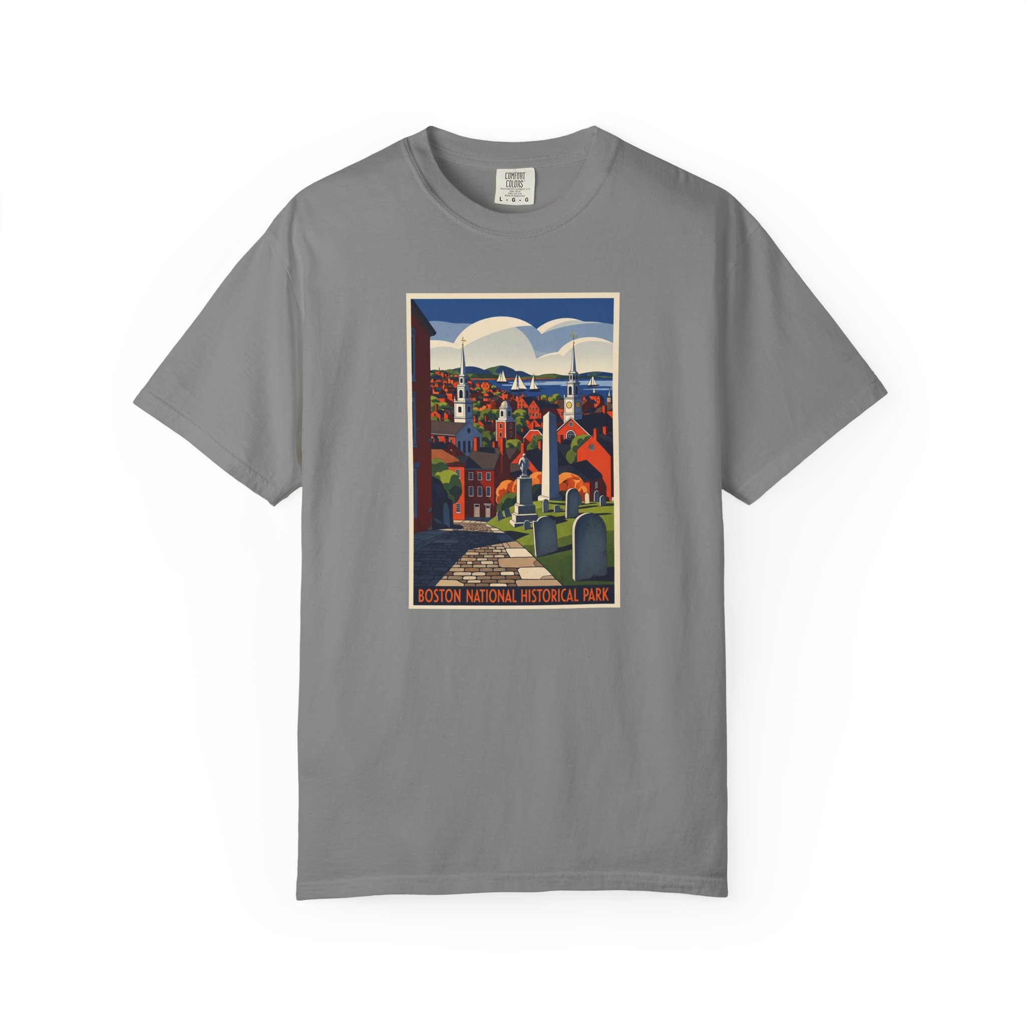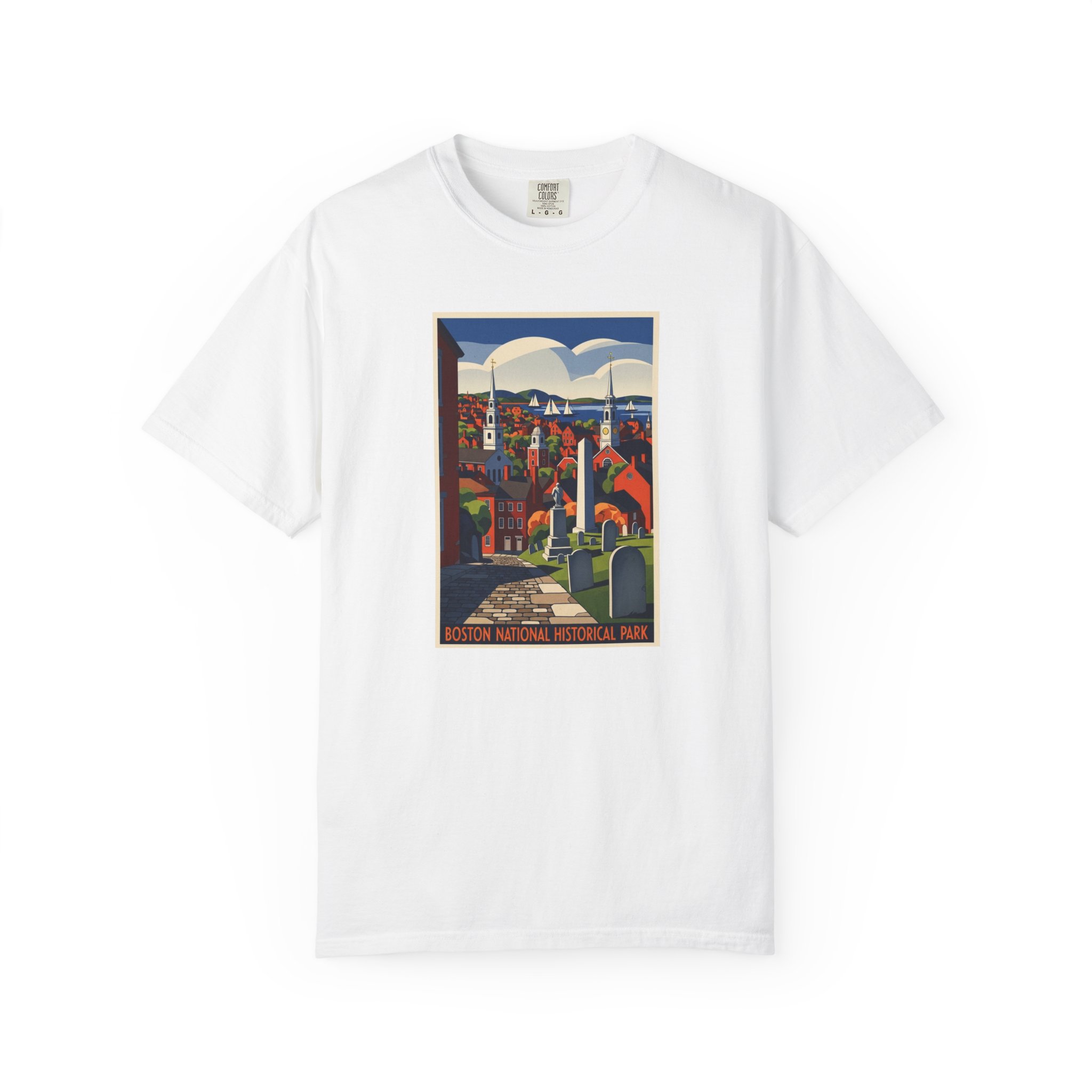 Eight sites across downtown marking the Revolution. The Freedom Trail connects them all. Tourists stop at every red brick for photos. America’s design golden age on a tee.