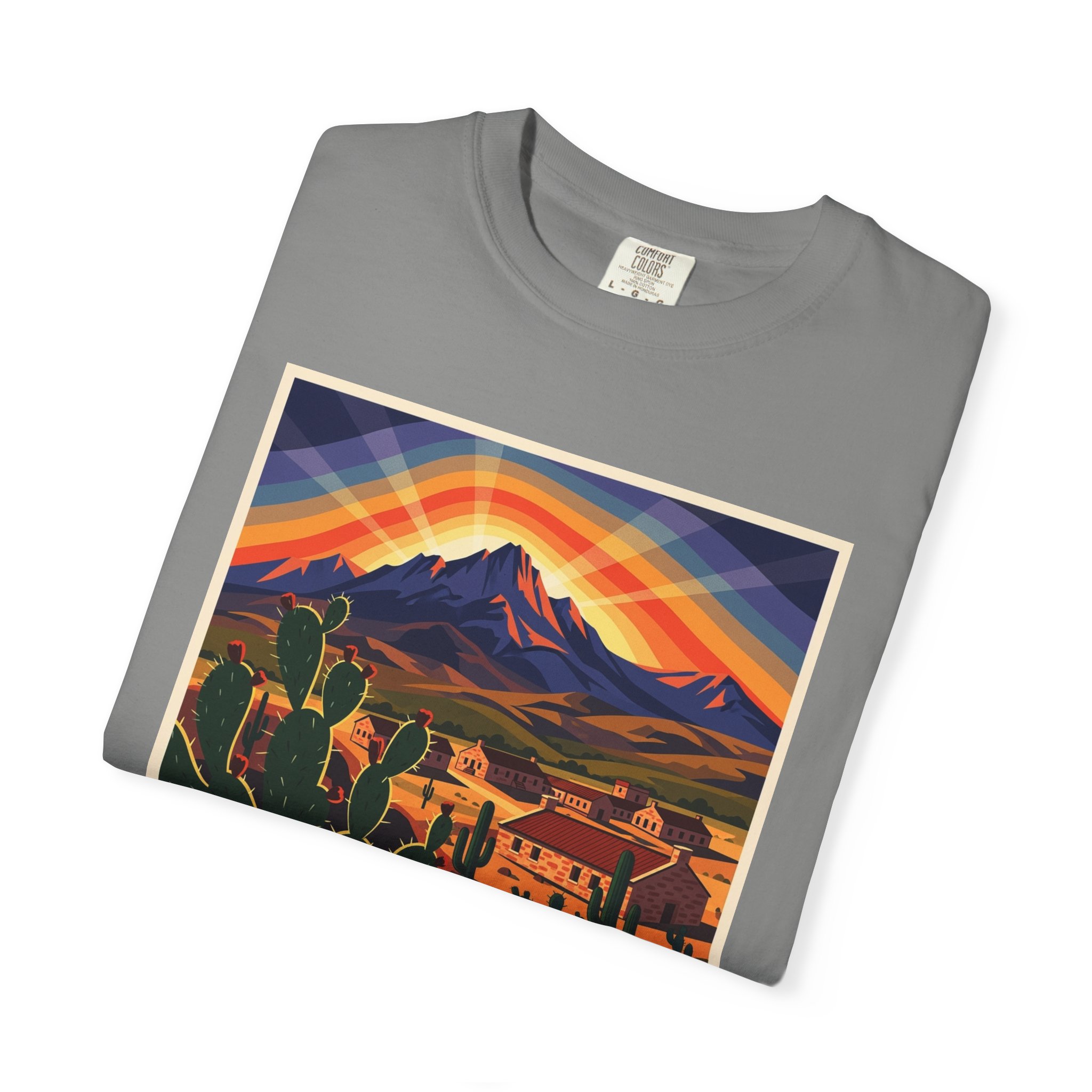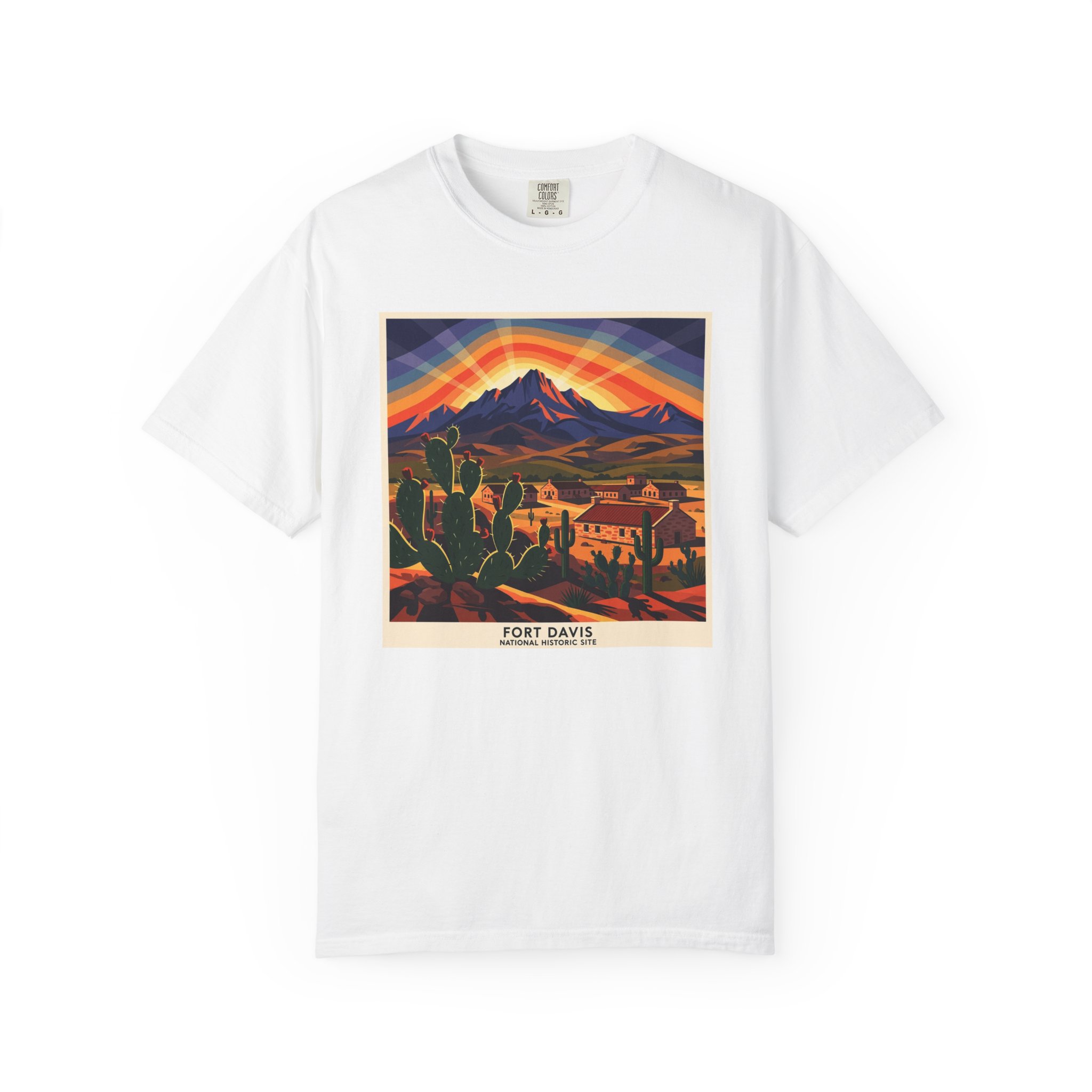 Frontier cavalry post from 1854. Davis Mountains at 5,000 feet. The bugle calls still echo at sunset across the parade ground. America’s design golden age on a tee.