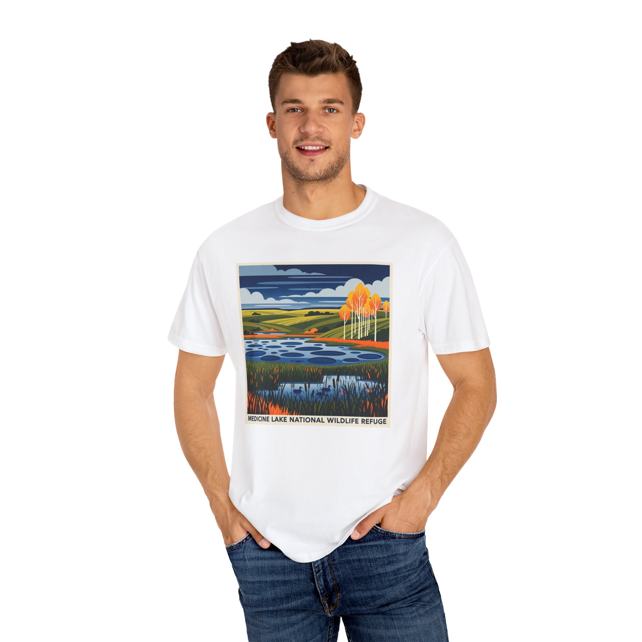 Medicine Lake National Wildlife Refuge WPA Style Unisex T-shirt